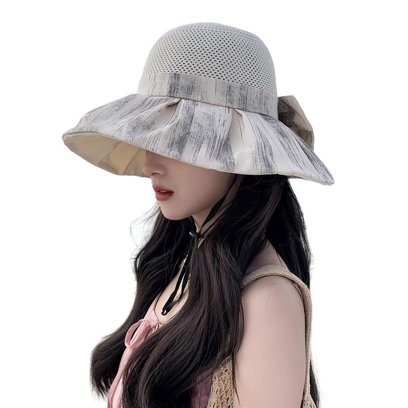 [Narebuy] レディース ハット つば広 UVカット 日除け帽子 蝶ネクタイ 紫外線対策 防風性 ファッション 汎用性の高い カバーフェイス 小顔効果 かわいい サイズ調節 通気性 エレガント 持ち運びに便利 アウトドア 海辺 登山 春夏