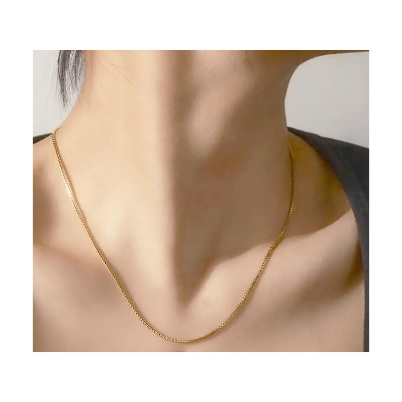 Name: Nareteri 14k Yellow / White Gold Box Chain Necklace for Women and Men Jewelry