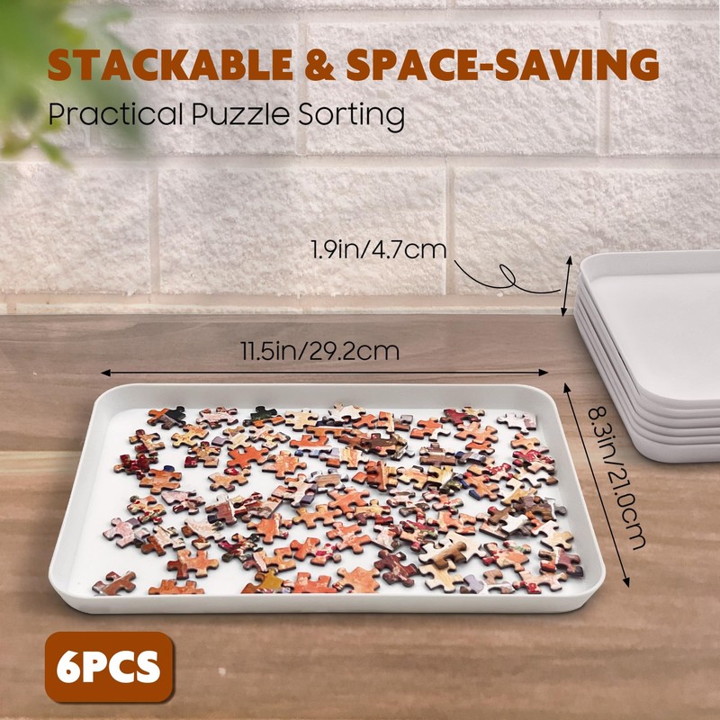 - 【6 Puzzle Sorting Trays Stackable】With six specially designed puzzle piece sorter trays, you can easily group your puzzle pieces by color, pattern, or shape! Whether you're organizing edge pieces or selecting specific patterns or color blocks, it becomes simple and efficient. The stackable design helps save space when puzzling alone and makes it even easier when you're working on puzzles with family and friends