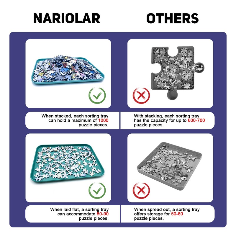 - 【Up to 2000 Pieces Capacity】Optimize your puzzle organization with Nariolar 8.7in x 12in (22cm x 30.5cm) puzzle sorter, providing ample storage space. Effortlessly organize up to 2000 pieces for puzzle enthusiasts with limited space!