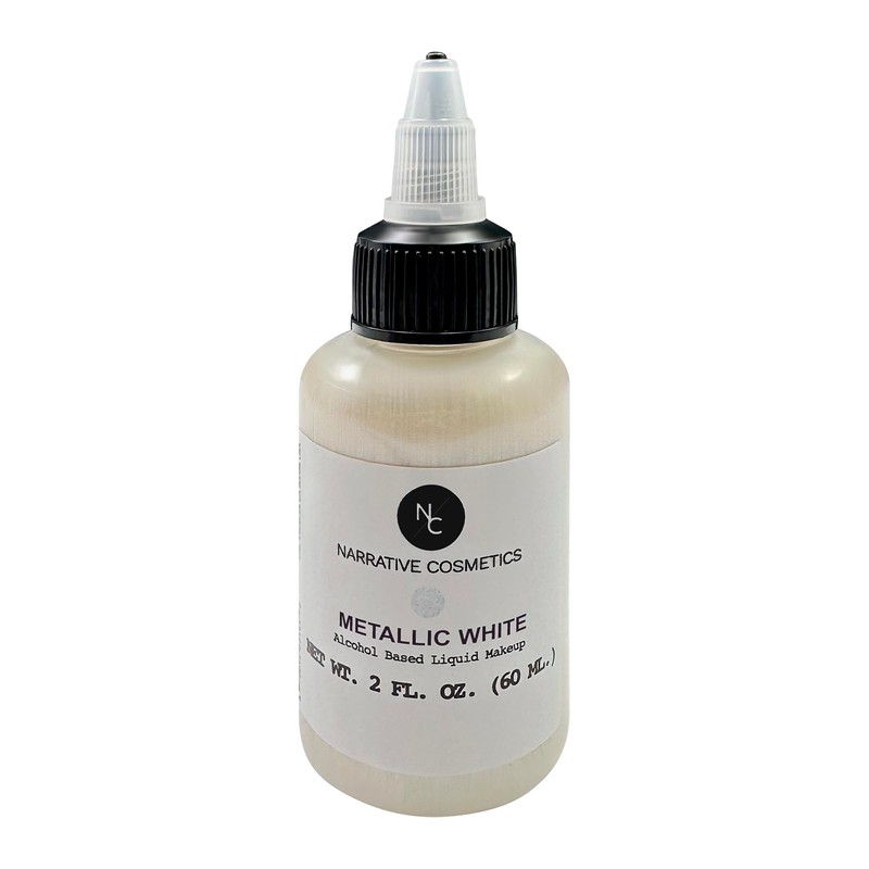 Narrative Cosmetics Metallic Alcohol Airbrush Paints - 2 fl oz, Skin Safe, Quick Dry, Waterproof, Sweatproof, Transferproof Liquid Makeup for Bodypainting, Theater, FX Makeup - Metallic White