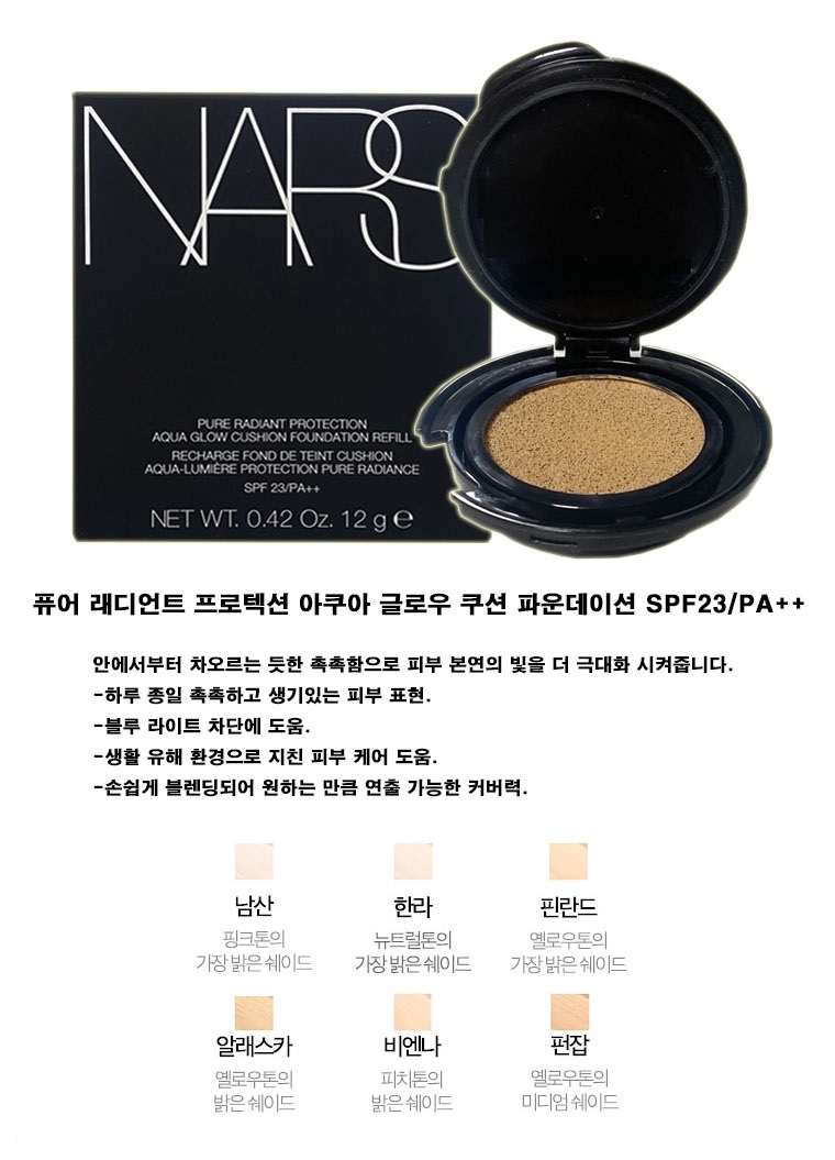 Nars Pure Radiant Protection Aqua Glow Cushion Refill SPF50 PA+++ 12g/Namsan/Halla/Finland/Alaska, Namsan (Refill) / 나스 퓨어 래디언트 프로텍션 아쿠아 글로우 쿠션 리필용 SPF50 PA+++ 12g/남산/한라/핀란드/알래스카, 남산(리필)