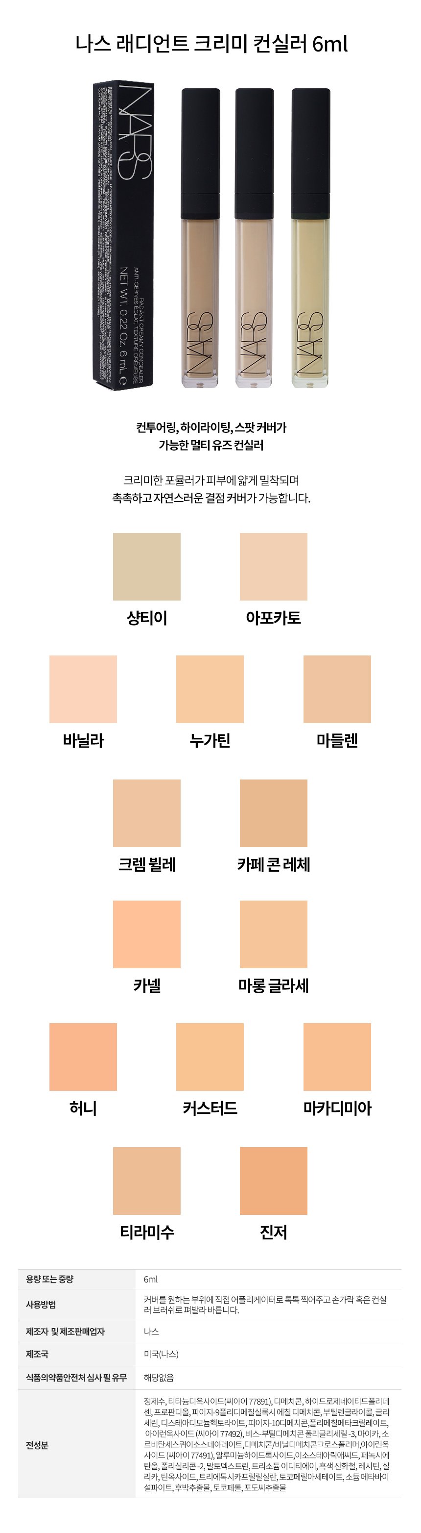 (나스)래디언트 크리미 컨실러 바닐라 NARS Radiant Creamy Concealer Vanilla