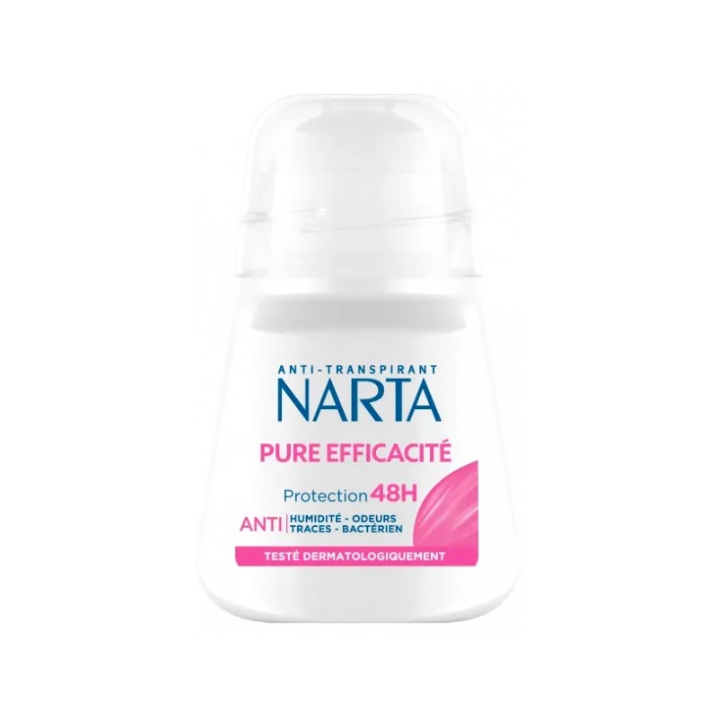 Narta Pure Efficacité Anti-Transpirant 48H 50 ml offers total protection for 48 hours against humidity, odors, traces and bacteria, ensuring a continuous feeling of freshness.