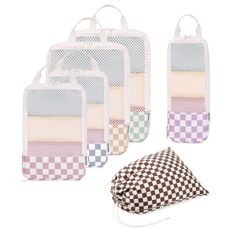 Narwey 6 Set Compression Packing Cubes for Backpack and Suitcases, Travel Organiser Packing Bags for Carry on Hand Luggage (Checker Combined)