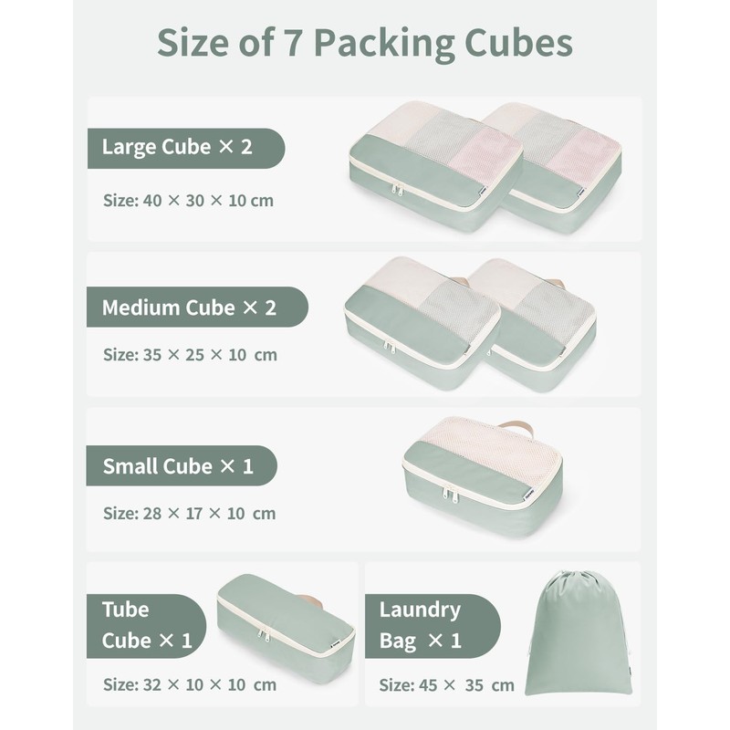 Narwey 7 Set Packing Cubes for Suitcases and Backpack, Suitcase Organiser Bags Travel Packing Cubes for Carry on Hand Luggage Storage Bags Travel Essentials Accessories (Mint Green)