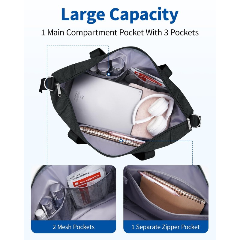 - Multiple Reasonable Pockets - Front zippered pocket allows quick access to frequently used items like tickets or passport. One inner full zipper pocket and two mesh pockets offer separate storage for you to keep things organized. No more scrambling - this bag keeps your essentials handy