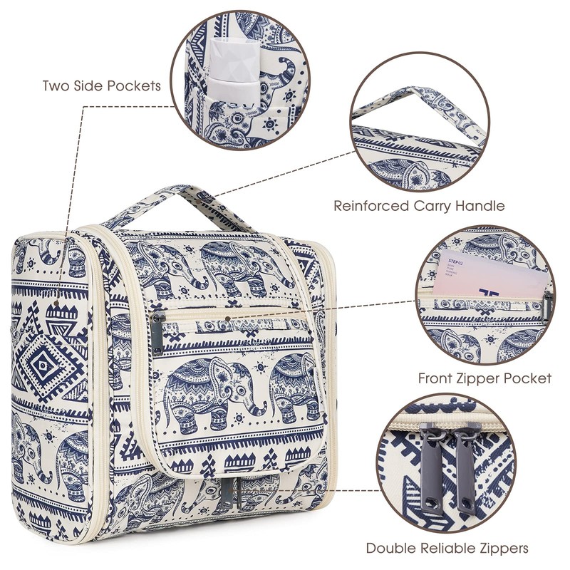 Narwey Hanging Toiletry Bag for Women Travel Makeup Bag Organizer Toiletries Bag for Cosmetics Essentials Accessories (Large, Elephant)