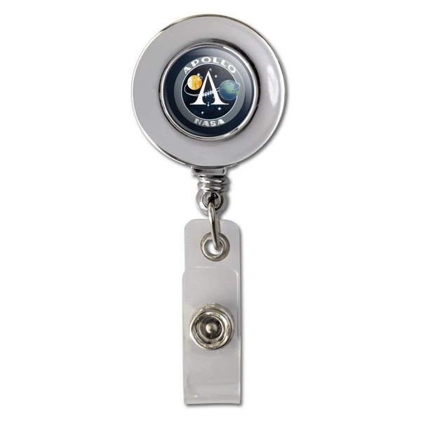 NASA Apollo Space Program Patch Retractable Reel Chrome Badge ID Card Holder Clip