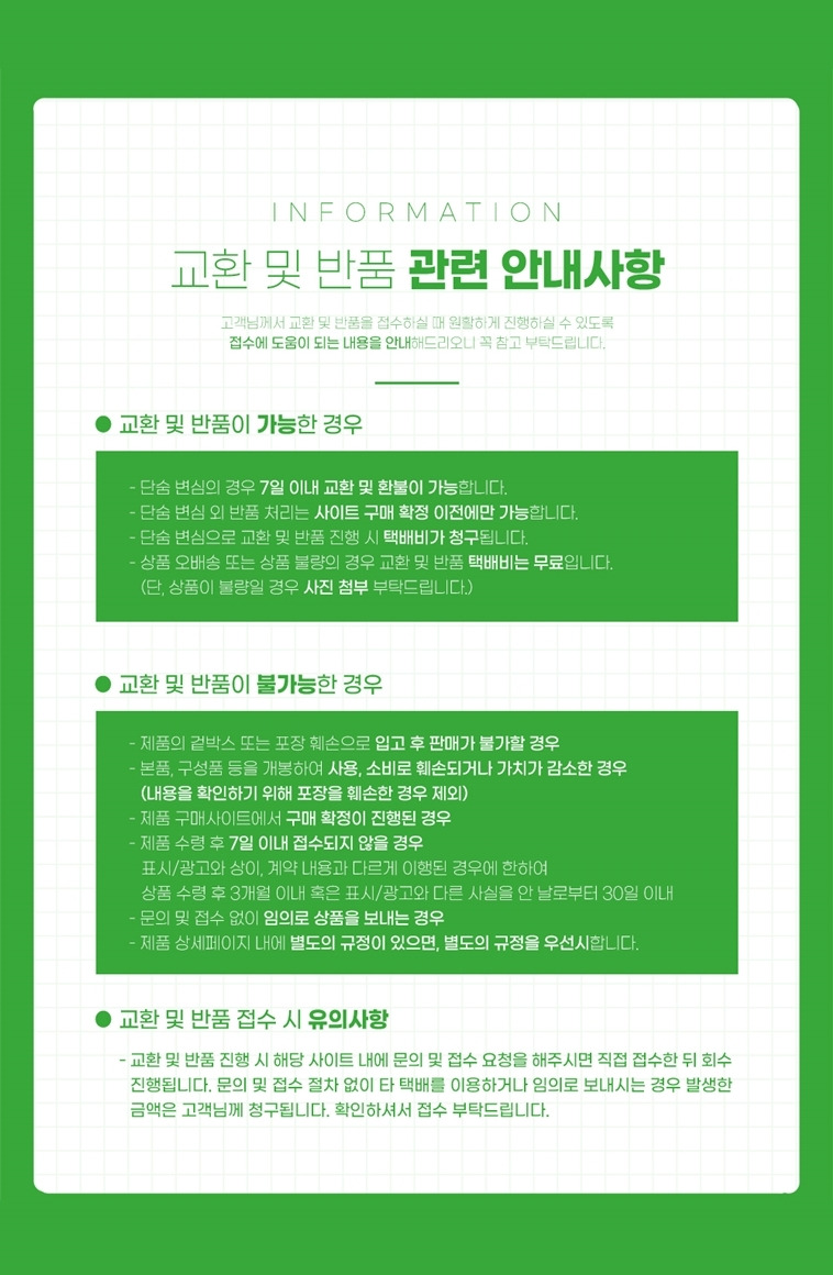 본 제품을 구매하시면 원활한 배송을 위해 꼭 필요한 고객님의 개인정보를 (성함, 주소, 전화번호 등) 택배사 및 제 3업체에서 이용하는 것에 동의하시는 것으로 간주됩니다.