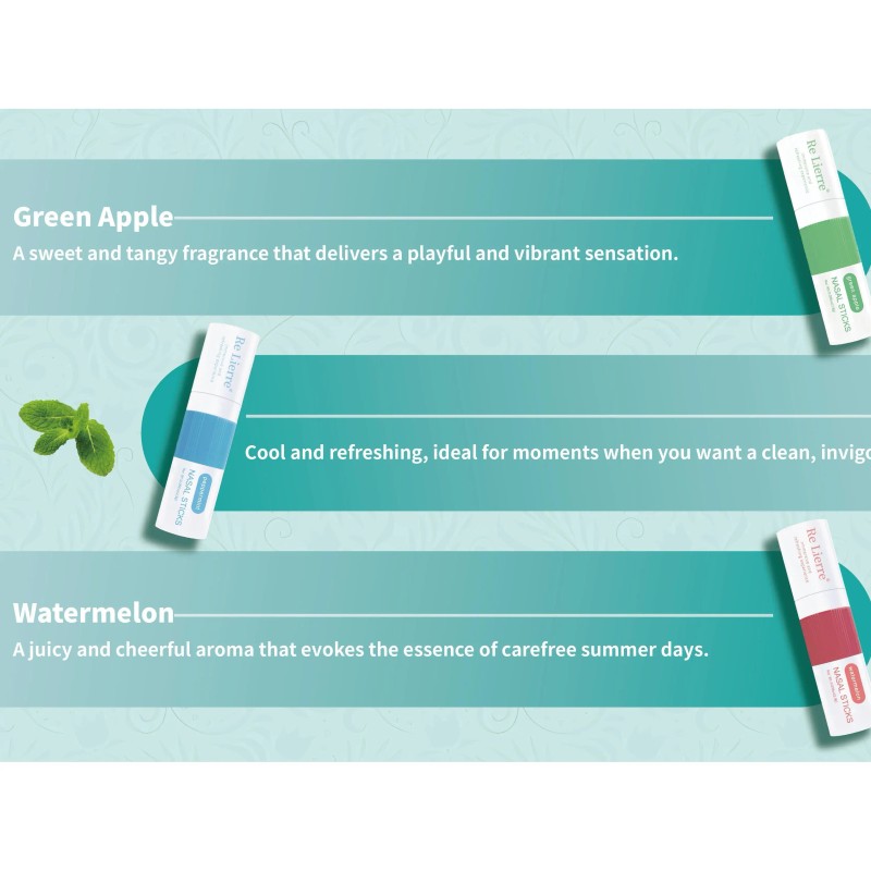 Experience the refreshing and fluent sensation with our Nasal Stick 3pcs pack. Each nasal stick is designed to provide a delightful and invigorating experience, perfect for moments when you need a quick refreshment. The Green Apple variant offers a sweet and tangy fragrance that delivers a playful and vibrant sensation, ideal for lifting your mood and energizing your senses. For those seeking a cool and refreshing moment, our mint-scented nasal stick provides a clean and invigorating aroma, perfect for any time you want a burst of freshness. Lastly, our Watermelon variant brings a juicy and cheerful aroma that evokes the essence of carefree summer days, making it the perfect choice for a joyful and uplifting experience. Choose from these three delightful scents and enjoy the refreshing and fluent experience our nasal sticks offer.