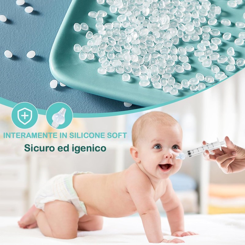 Nasal Wash Set Children, Babies and Adults - 2 Syringes + 8 Soft Olives - Nose Cleaning Kit Made in Italy - Sprinkler for Physiological Solution - Safe and Gentle