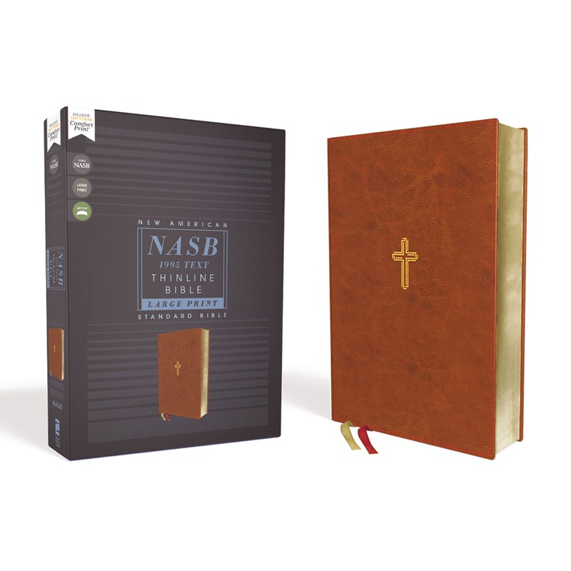 NASB, Thinline Bible, Large Print, Leathersoft, Brown, Red Letter, 1995 Text, Comfort Print