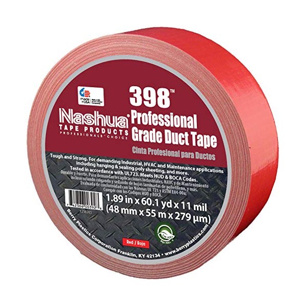 Nashua 398 Red Duct Tape, Heavy Duty, Water Resistant, 1.89 Inch x 60 yds, 1 Roll