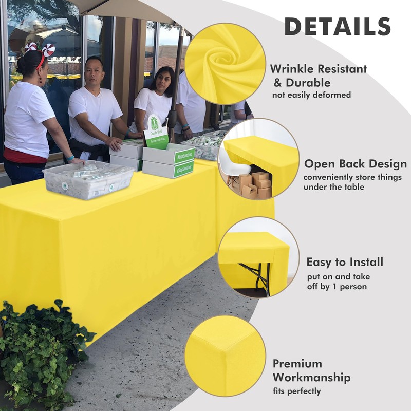 Nasitos 2 Pack 6' Fitted Tablecloth Yellow Trade Show Table Cloth-Open Back T...