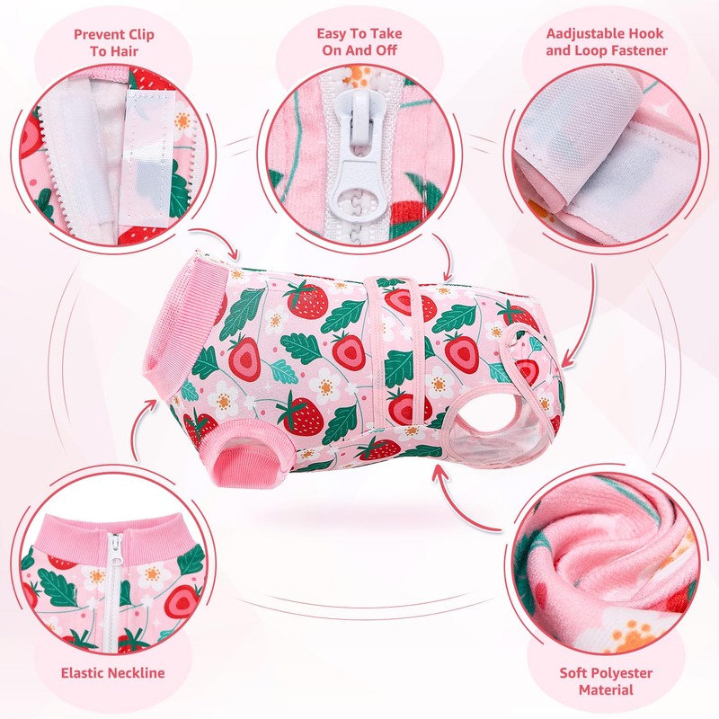 Nasjac Recovery Suit for Dogs - Zipper on Recovery Suit for Female Male Dog, Abdominal Wounds Cone E-Collar Alternative Onesie, Prevent Licking Spay Recovery Shirt (Pink Strawberry, S)