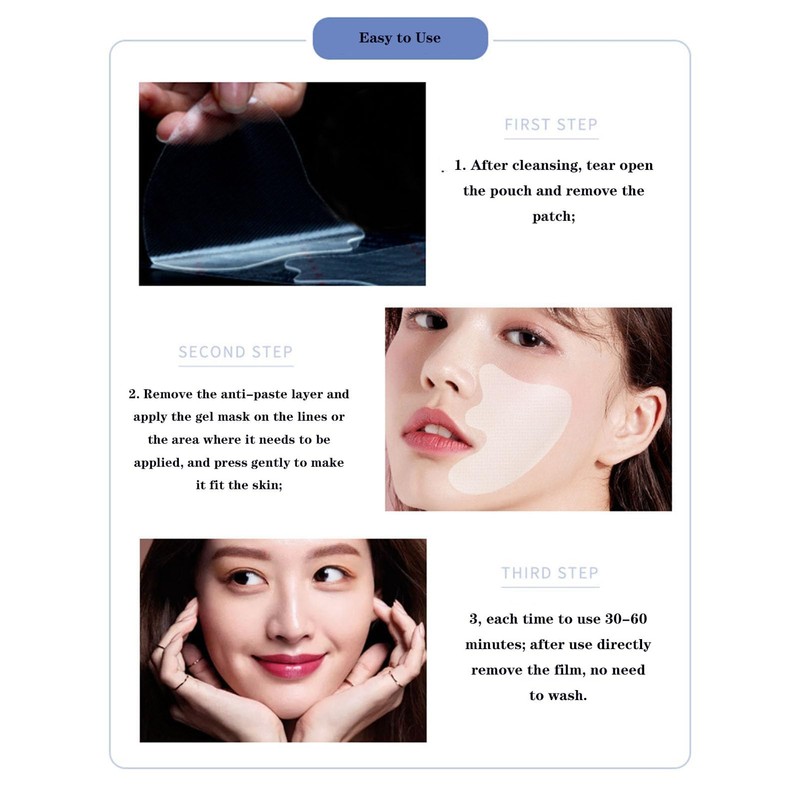 - Nasolabial Folds Patches: Target deep lines around the mouth and nose with our Nasolabial Folds Patches. These patches work to visibly smooth and lift the skin, reducing the appearance of smile lines and enhancing the natural contours of your face.