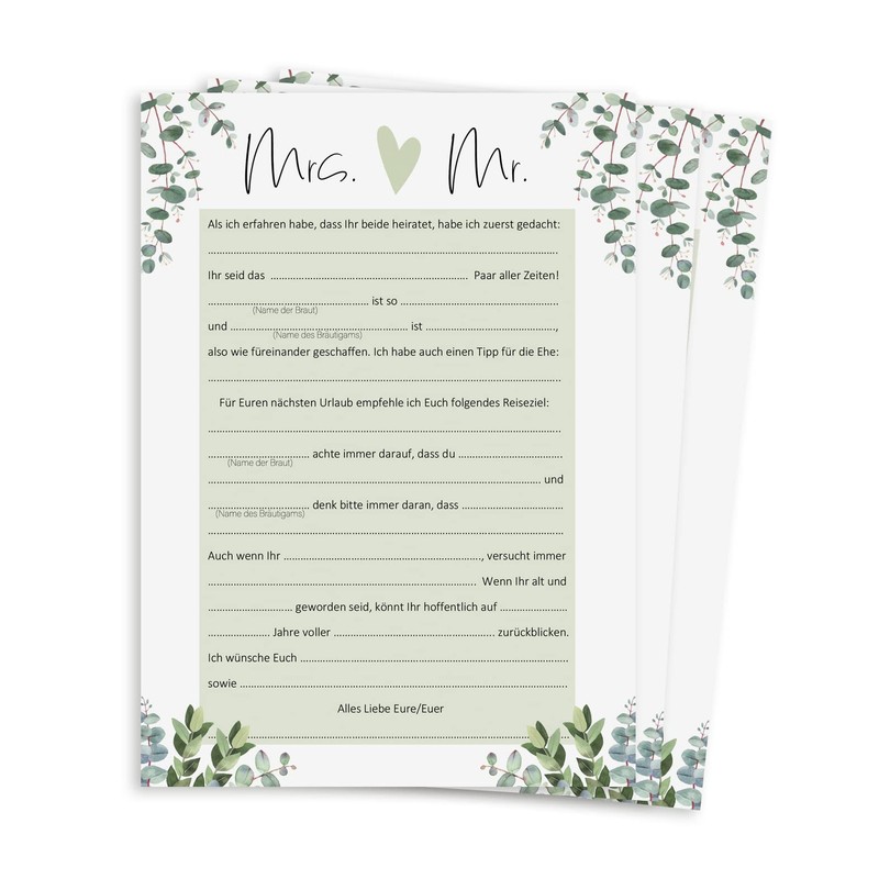 Nastami 25 x Sheets for Wedding Game Lückentext Eucalyptus Guest Book