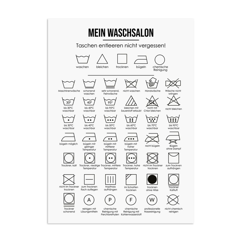 Nastami Poster, Laundry Symbols, Laundry Room Poster with Washing Instructions, Housewarming Gift (DIN A4)