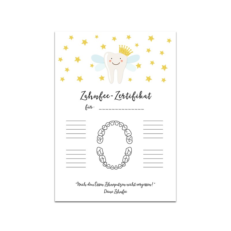 - In the certificate you can write the name of your child. Whenever a tooth is lost, the date can be entered.