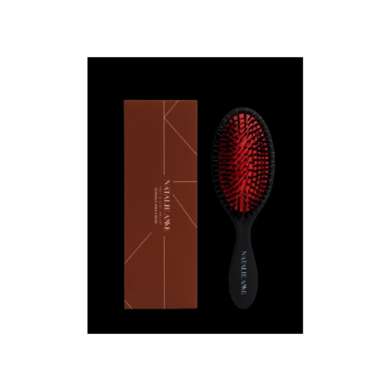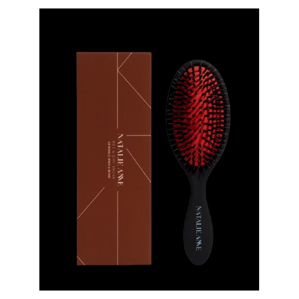 This multi-purpose brush is perfect for detangling wet hair and distributing conditioner or treatments in the shower or at the basin. Its oval shape is designed to snatch the perfect pony, and when used dry, it will promote shine and help you create the perfect wave. The brush's matt finish allows for the perfect grip, and it is Natalie Anne's go-to brush for finishing the perfect wave.