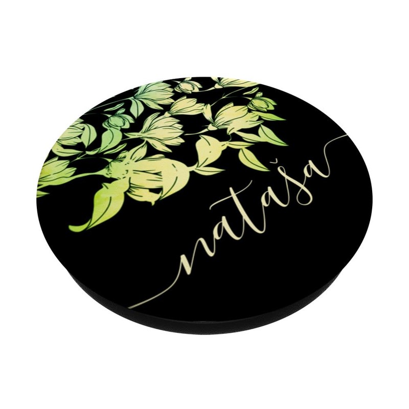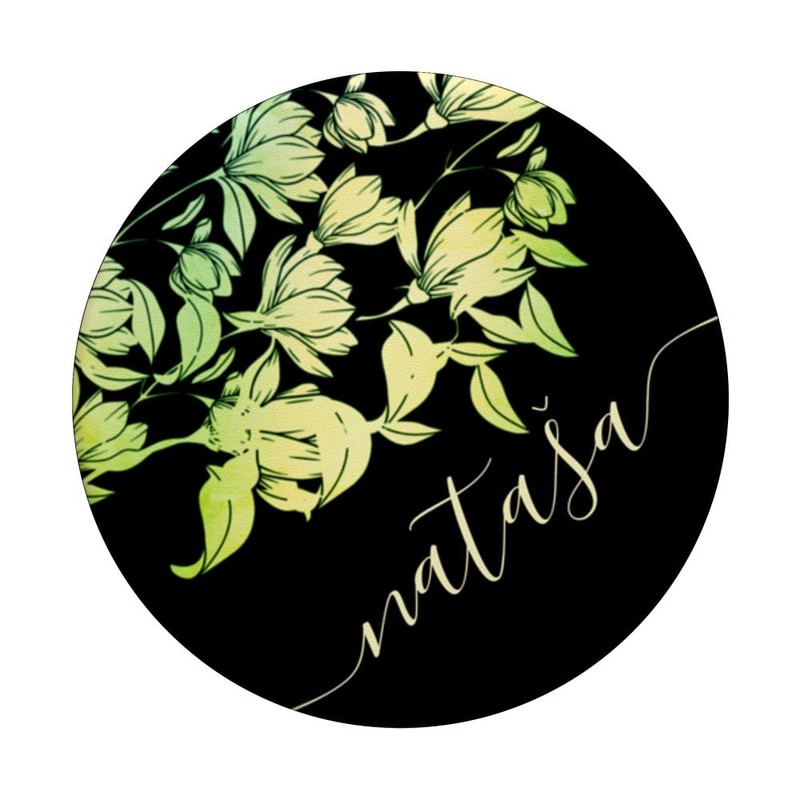 Nataša Name Vorname Kalligrafie Schrift Grün Tulpen Motiv PopSockets Klebender PopGrip