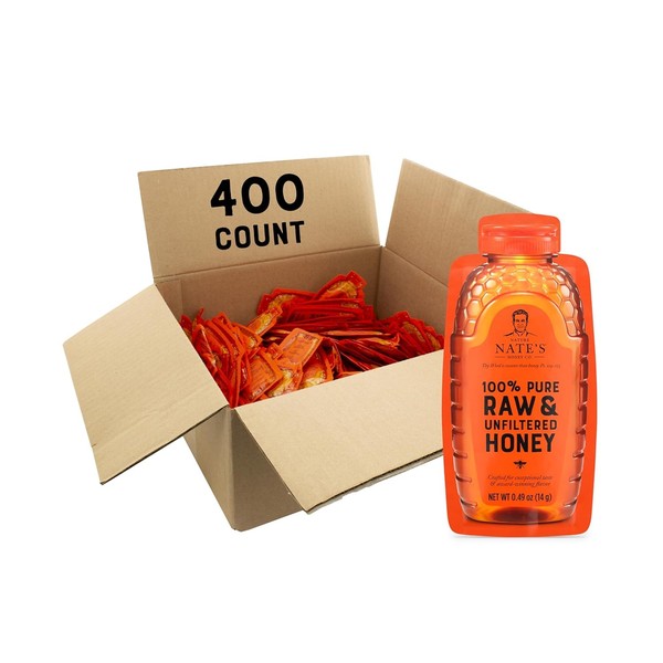 Nate's Bulk 400ct Honey Minis - Single-Serve 100% Pure, Raw & Unfiltered Honey – 0.49oz Packets, 400ct box