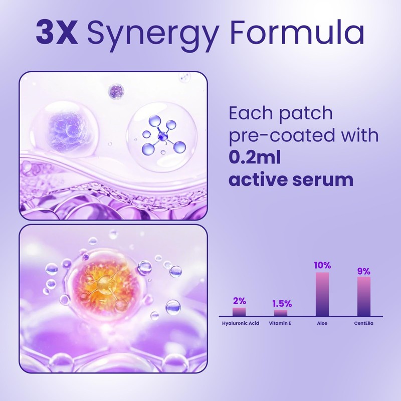- POWERHOUSE INGREDIENTS, VISIBLE RESULTS----Infused with multi-peptide complexes, collagen, hyaluronic acid, and nourishing botanicals, these patches deliver deep hydration, boost elasticity, and relax tense muscles. Watch fine lines fade as premium ingredients work overnight to rejuvenate your skin.