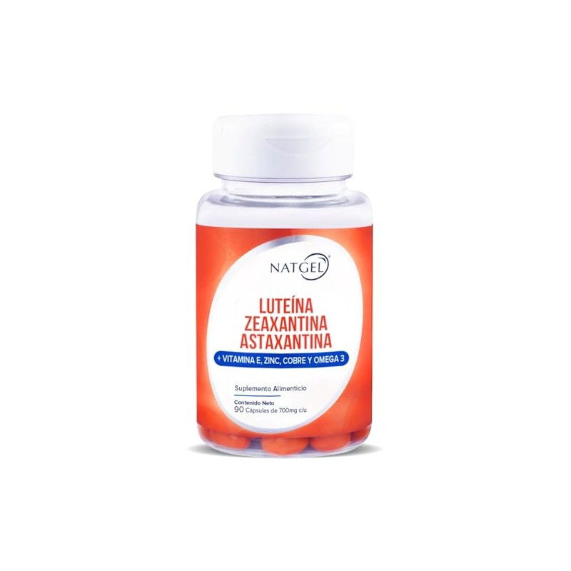 NatGel Lutena, Zeaxantina y Astaxantina con Vitamina E, Zinc, Cobre y Omega 3 Frmula Completa Nutricional para la Vista 90 Cpsulas