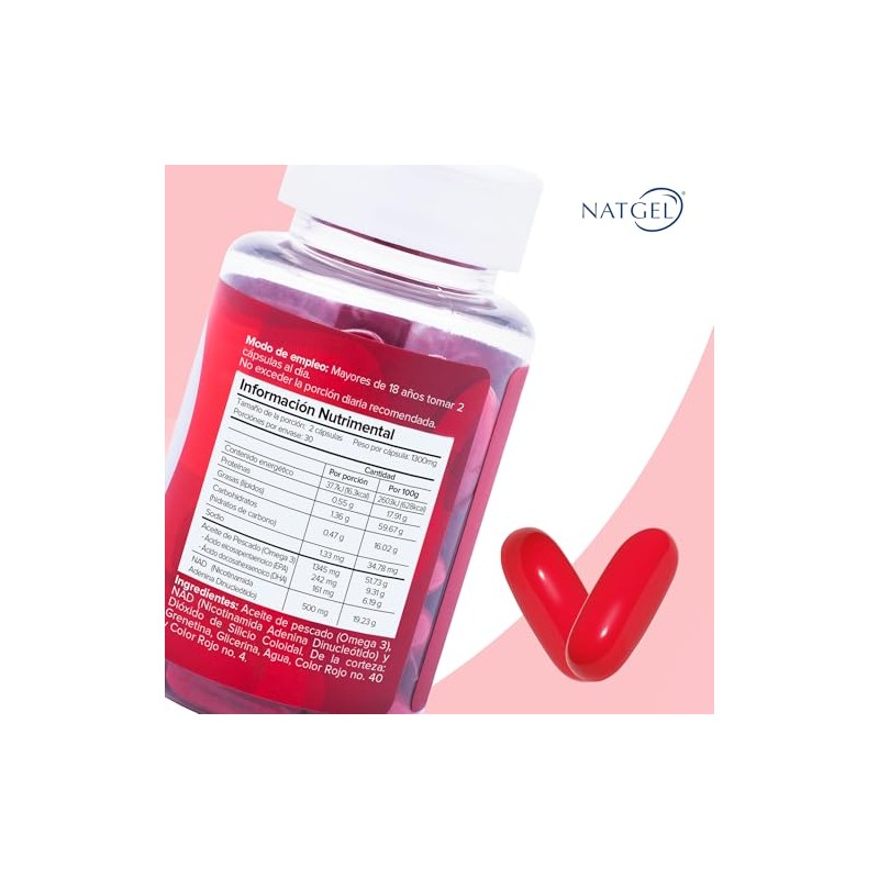 Acerca de este artículo ENERGÍA CELULAR: NAD+ es esencial para la producción de energía a nivel celular, mejorando el metabolismo y la vitalidad. LONGEVIDAD Y RENOVACIÓN: Apoya los procesos de envejecimiento saludable y la regeneración celular. ENRIQUECIDO CON OMEGA 3: Omega 3 potencia la absorción de NAD+ y ofrece beneficios adicionales para el corazón y el cerebro. DOSIS OPTIMIZADA: Cada cápsula de 1. 3g proporciona una concentración precisa de NAD+ y Omega 3 para máxima eficacia. CALIDAD ASEGURADA: Producido en instalaciones certificadas, garantizando la pureza y efectividad del producto.