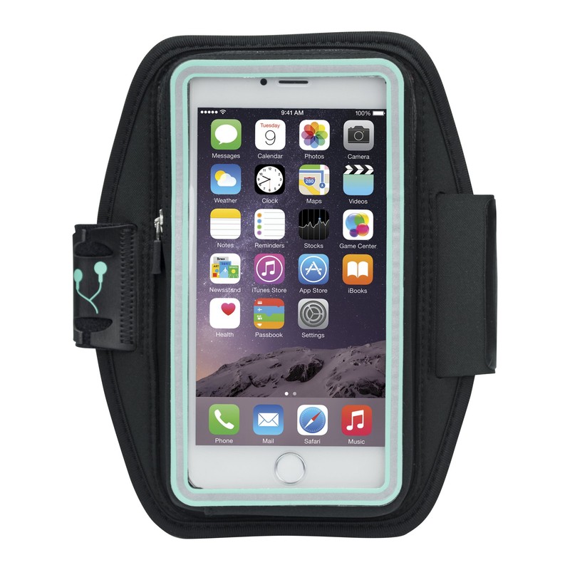 FEATURES of the Nathan SonicStorm Armband Performance fabric provides a comfortable and secure fit Water resistant zipper and fabrics protect against rain Internal storage area plus stash pocket holds running essentials Cord management system organizes wire slack Fits up to iPhone 6 sized smartphones with case