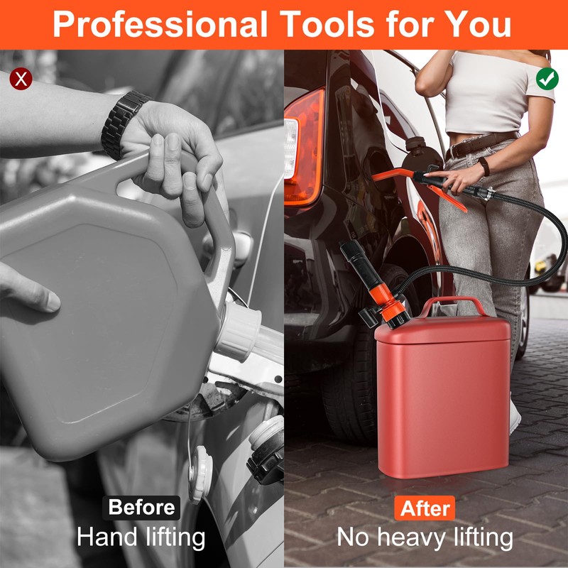 - Fast & Efficient Fuel Transfer: Enjoy a high-speed flow rate of up to 2.4 gallons per minute with minimal noise, making it perfect for transferring gasoline, oil, water, and more. The flexible hose and anti-leak design make liquid transfer clean and efficientno spills, no stress.