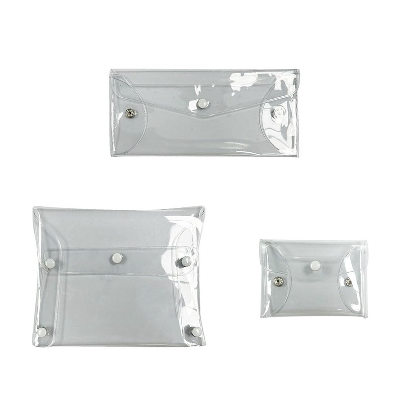Natiform 3Pcs Pvc Clear Button Case Pencil Bag Toiletry Pen, CLEAR, Modern