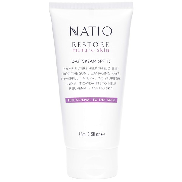 Natio Australia Restore Day Cream SPF 15 75ml - Firming & Hydrating Day Moisturiser for Mature Skin - Hyaluronate, Rosehip, Aloe, Tumeric, Arnica, Apricot Kernel, Shea Butter & Calendula - Made in Australia