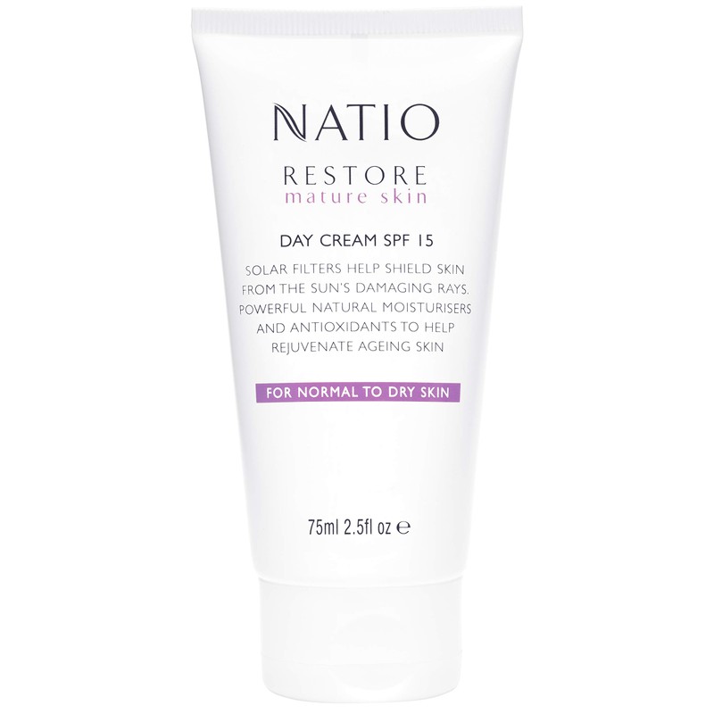 Natio Australia Restore Day Cream SPF 15 75ml - Firming & Hydrating Day Moisturiser for Mature Skin - Hyaluronate, Rosehip, Aloe, Tumeric, Arnica, Apricot Kernel, Shea Butter & Calendula - Made in Australia