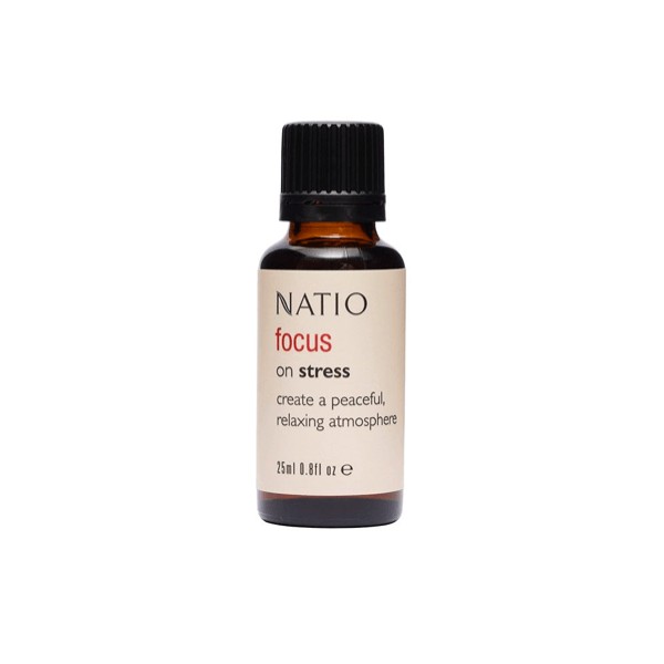 What are the benefits and features of Natio Focus On Stress Oil Blend 25ml?- Soothing blend of essential oils promotes relaxation and reduces stress.