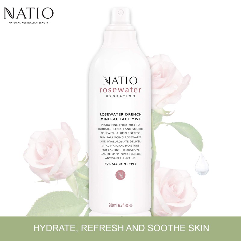 Natio Rosewater Hydration Moisture Drench Mineral Face Mist 200ml Online Only