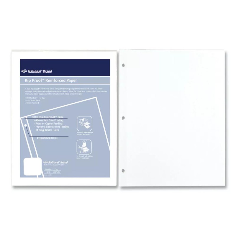 National 8.5 in. x 11 in. 3-Hole Rip Proof Unruled Reinforced Filler Paper (100/Pack)