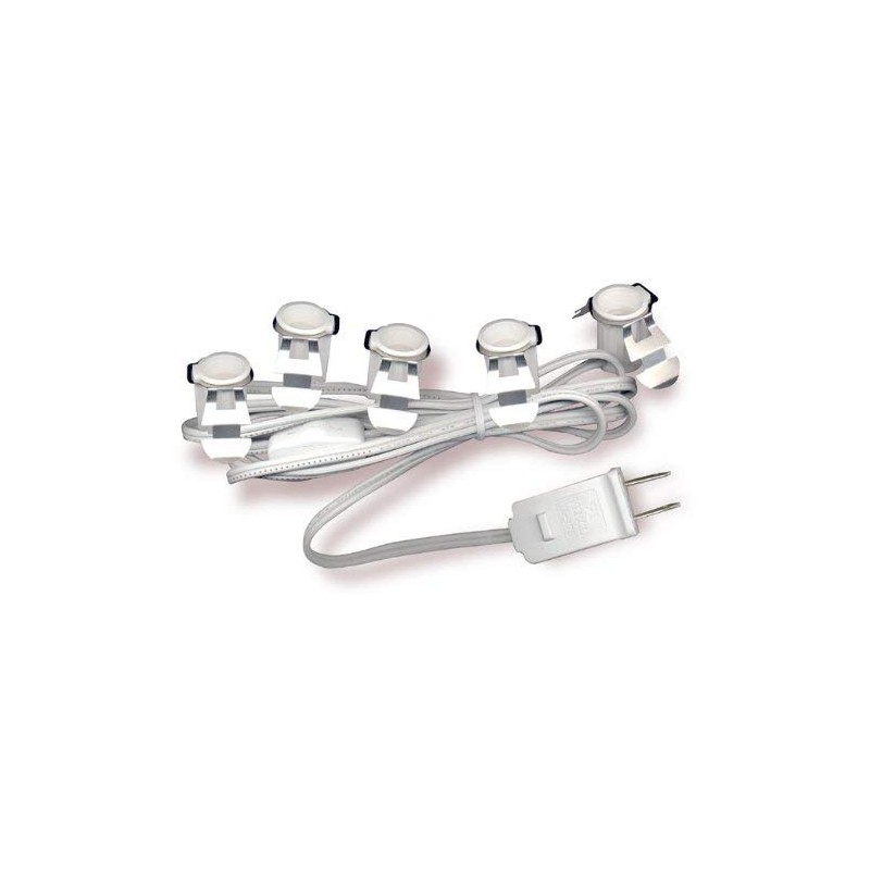 National Artcraft's lamp and lighting cord set has five clip-in style sockets on the same cord. The cord is 8'-2" long and it has a 2 prong polarized plug at the end with a built-in safety fuse. The cord is rated SPT-1 (#18-105°) wire. The candelabra style sockets are rated for maximum 7-1/2 watt bulbs and each socket has a metal clip that snaps into a 1-1/8" round hole. The sockets extend 1/2" into your lighting project. There is a distance of about 8" between the first two sockets and 6" between the other sockets. There is also an on/off wheel switch located 24" from the last socket. The components are UL listed and factory assembled. For indoor use only.