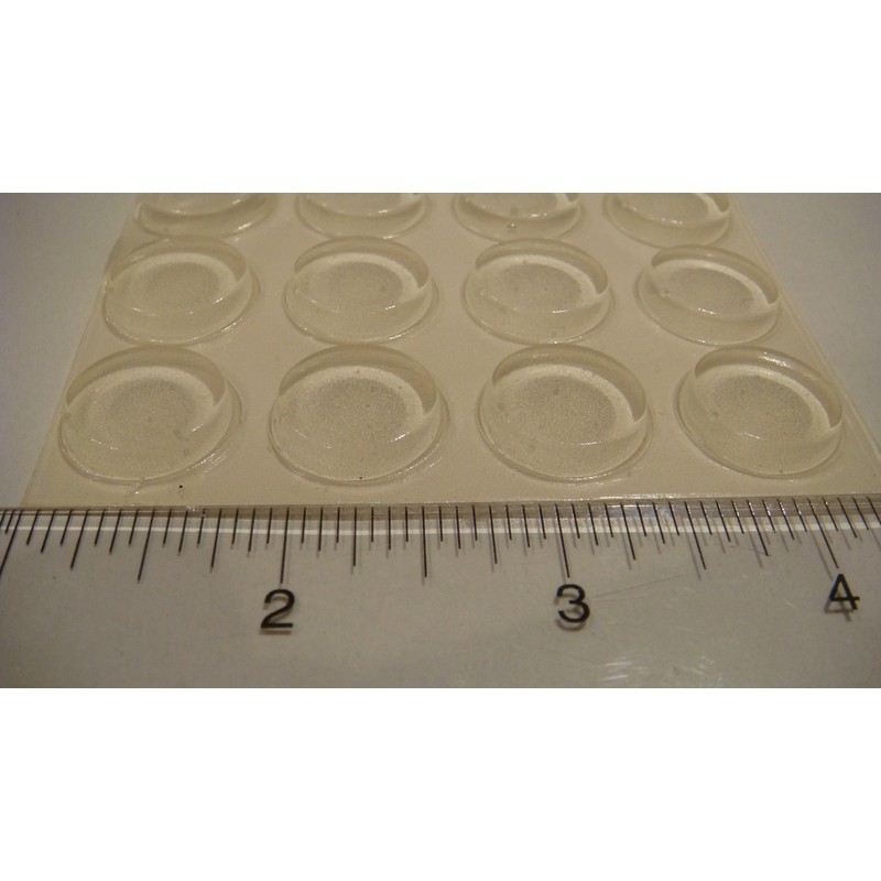 National Artcraft's clear polyurethane surface protectors are used to shield delicate surfaces and provide clearance between two objects. They are perfect under glass. They are also flat on top to provide a solid, stable surface between two objects. One side is coated with a permanent adhesive. Each protector measures 1/2" in diameter by 1/8" high.