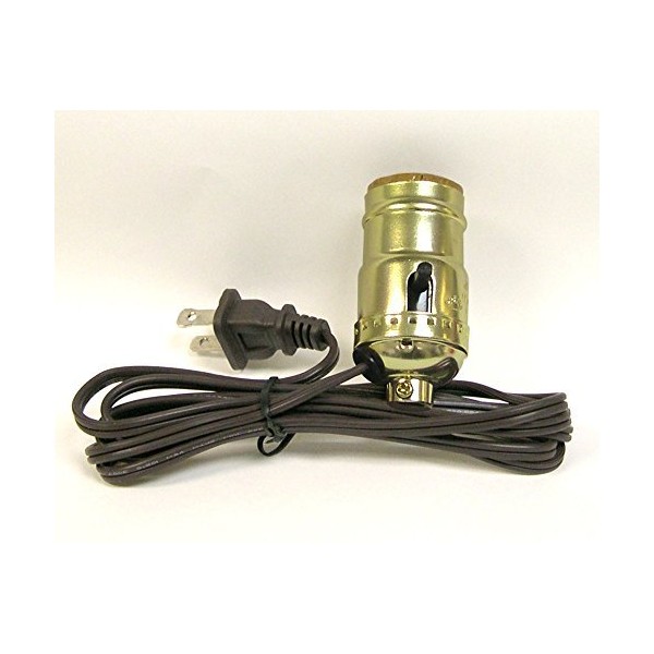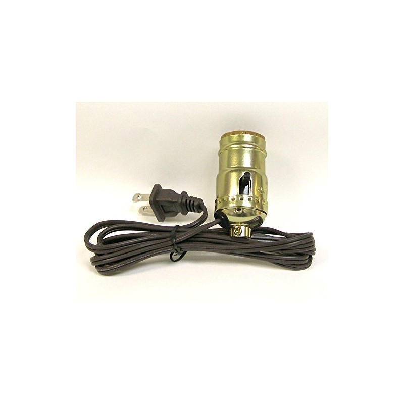 National Artcraft's side exit light socket and cord allows you to create your own specialty lamp. The brass finish Edison socket has a push-thru on-off switch and 6' brown cord. This socket and cord prevents you from having to run the electric cord through your lamp base. Just attach the socket to the base of your choice, add a bulb and you have an instant lamp. For indoor use only.