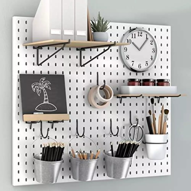National Hardware N900-003 Metal Assortment PegBoard Storage with Rounded Hooks Shelf Paper Towel Holder and Cup for Kitchen Craft Garage Black