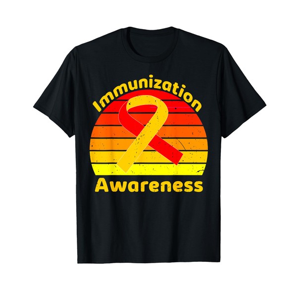 - Immunization Awareness Retro Yellow and Red Ribbon Design For Men and Women For Support Vaccination. Help More For National Immunization Awareness Month