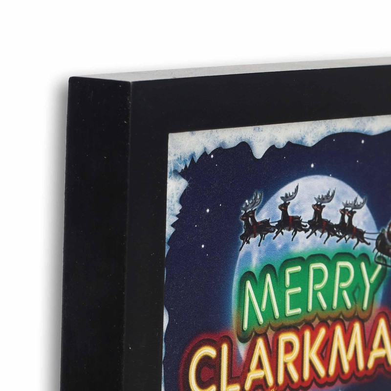 - Framed Wall Art: With the playful phrase "Merry Clarkmas," the sign pays tribute to the iconic character Clark Griswold and his endearing mishaps. The scene depicts the overly illuminated house, a hallmark of the movie, adorned with festive lights, while Santa's sleigh soars above, adding a touch of whimsy and magic.