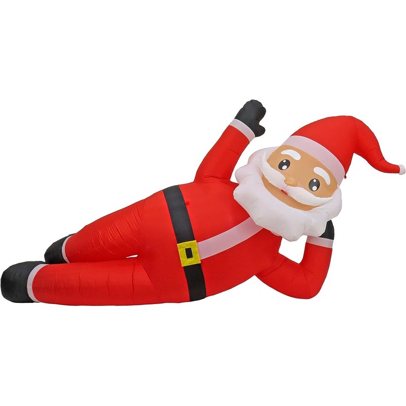 - This fantastically festive lawn inflatable features a larger than life Santa Claus lounging on his side with his hand raised in greeting to all those passing by