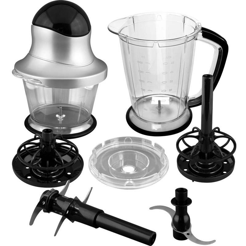 - Single blade chopper, dual blade blender/crusher, blender/mixer attachment, locking interchangeable lid