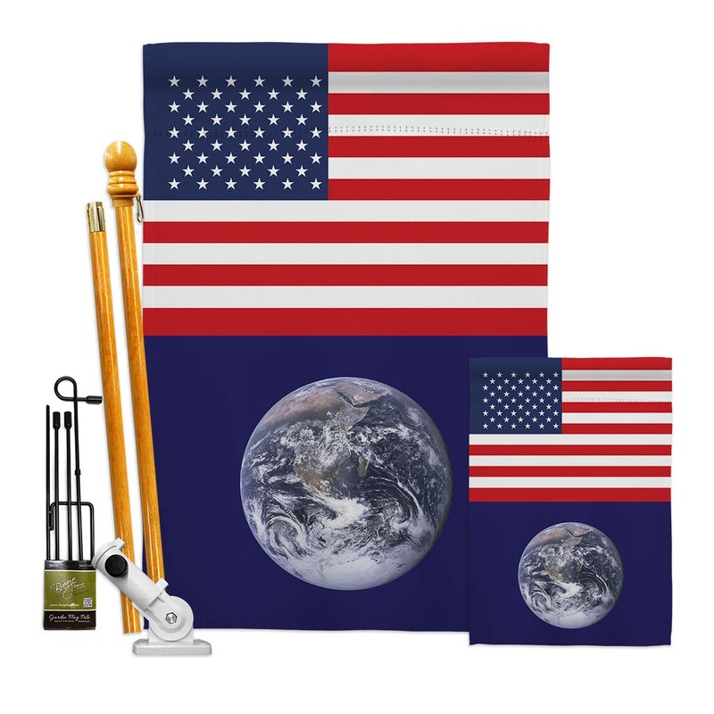 Nationality Earth US Garden House Flags Kit Regional Nation International World Country Particular Area Small Decorative Gift Yard Banner Made in USA 28 X 40