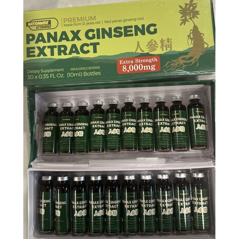 Nationwide Vitamins RED PANAX GINSENG EXTRACT 1 SEALED BOX 10 - 10 ML BOTTLES EXTRA STRENGTH USA