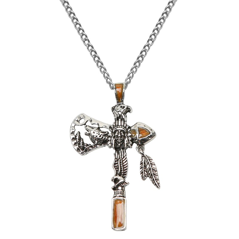 Native American Jewelry: Men's Viking Necklace with Indian Pendants - Norse Wolf Amulet, Axe, Animal Eagle Gothic Chain - US Inspired for Adults Men and Women (1 PCS)