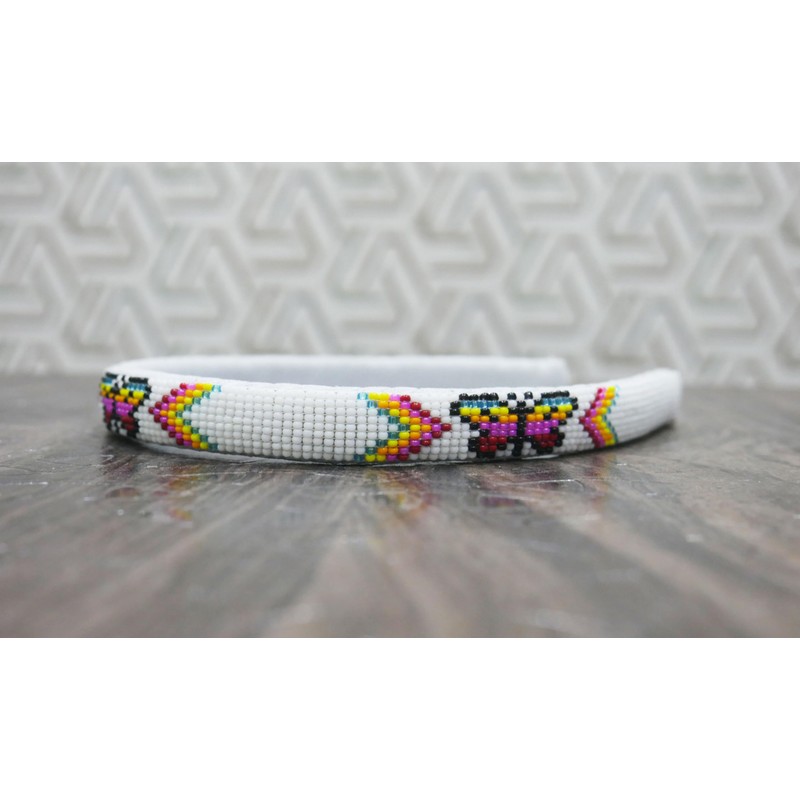 Native American style Southwestern Beaded Headband Beaded Barrette, Gift of her (White Butterfly, One size)
